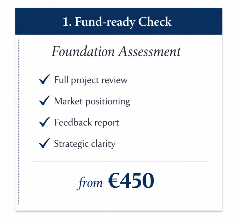 Validate your foundation before investing in grant applications. Get a clear-eyed assessment of your project, positioning, and readiness.
