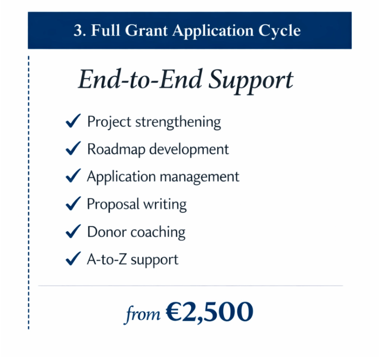 Do you need a partner to turn your vision into a funded project? We can offer hands-on, collaborative A to Z strategic fundraising support to your organisation.